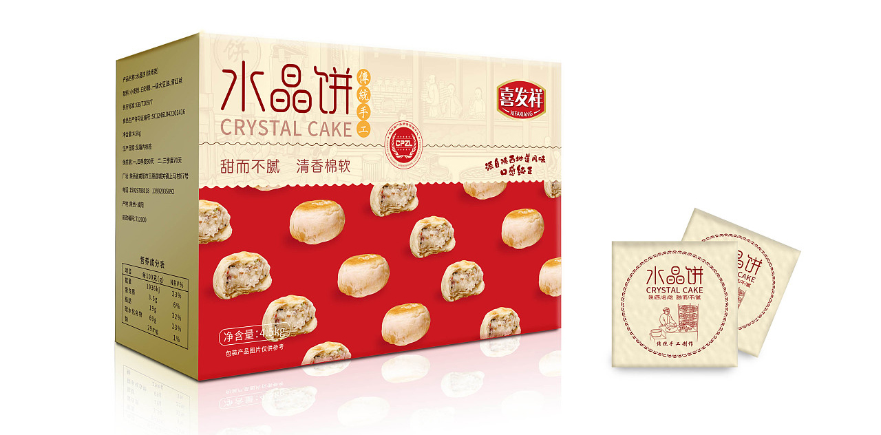 喜發(fā)祥是西安一家專(zhuān)業(yè)從事水晶餅研發(fā)制作和生產(chǎn)銷(xiāo)售公司,起初與他們交流的時(shí)候,發(fā)現(xiàn)他們的包裝簡(jiǎn)單,比較傳統(tǒng),沒(méi)有自已的品牌包裝特色。